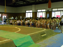 社団法人成田青年会議所・成田市相撲連盟の主催で行われ、成田市・富里市の小学生全学年の男女108名の児童が参加されました。本年度の取り組みは、団体戦10チームそして個人戦のトーナメントを行いました。昼食では、ちゃんことスイカをおいしそうに食べている子ども達がいました。